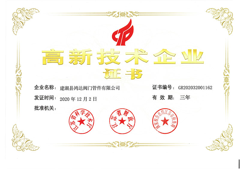 建湖縣鴻達(dá)閥門管件有限公司創(chuàng)建于1998年,2011年在建湖縣高新技術(shù)開發(fā)區(qū)新建工廠。公司注冊資金20288萬元,國家級高新技術(shù)企業(yè)、江蘇省優(yōu)秀民營企業(yè),國家級專精特新小巨人企業(yè)。